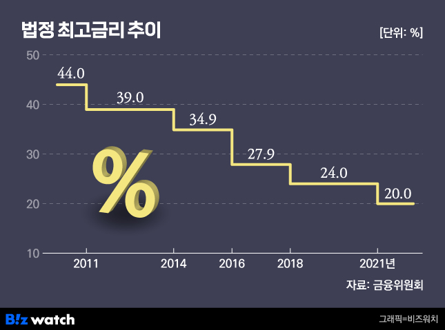 법정 최고금리 인하에 따른 기대효과와 부작용에 대한 우려가 공존하는 가운데 서민금융 공급의 핵심 역할을 하는 저축은행 업계 상황이 좋지 않다는 점도 고려 요인이다.