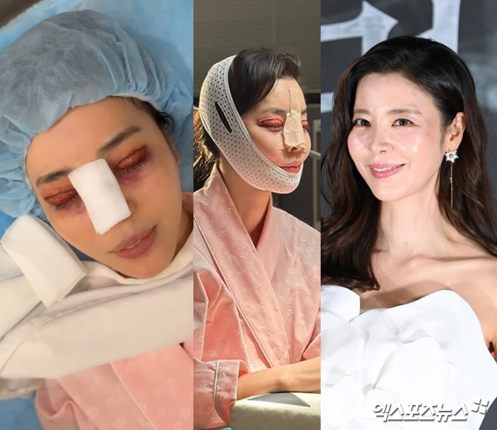 공개된 사진 속 김규리는 얼굴에 붕대를 칭칭 감은 채 퉁퉁 부은 눈으로 거울을 보고 있어 충격을 안긴다.