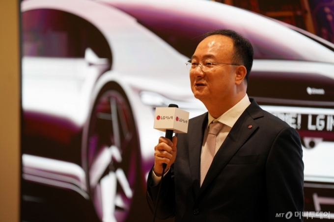 (서울=뉴스1) = 문혁수 LG이노텍 대표가 24일 서울 강서구 LG사이언스파크에서 열린 '제49기 정기주주총회' 종료 후 기자들의 질문에 답변하고 있다. (LG이노텍 제공. 재판매 및 DB 금지) 2025.3.24/뉴스1 Copyright (C) 뉴스1. All rights reserved. 무단 전재 및 재배포, AI학습 이용 금지. /사진=(서울=뉴스1)