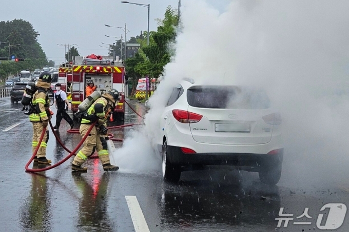 18일 뉴스1에 따르면 지난 16일 제주시 연북로를 지나던 SUV 투싼 차량에서 화재가 발생했다.