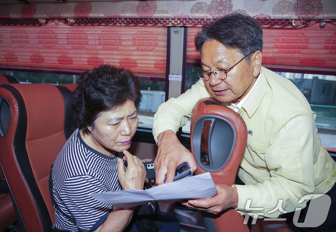 (광주=뉴스1) 박준배 기자 = 강기정 광주시장이 18일 오전 서구 세화동 시내버스 공영차고지에서 출발한 비상수송차량인 순환01B 전세버스에 탑승해 시민과 배차시간 등에 대해 대화하고 있다.(광주시 제공. 재판매 및 DB 금지) 2025.6.18/뉴스1