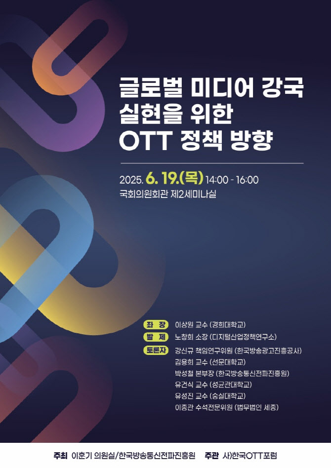 OTT 플랫폼의 글로벌 경쟁이 가속화되는 가운데, 이번 세미나는 국내 OTT 산업의 미래를 설계하는 의미 있는 정책 논의의 장이 될 것으로 기대된다.