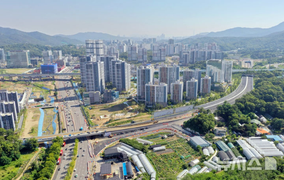 안양시(인덕원)쪽에서 바라본 과천지식정보타운 모습. [사진=과천시 제공] |