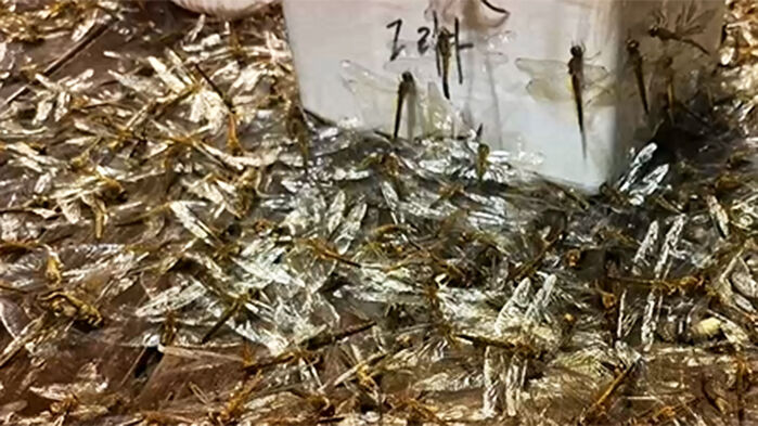 낚싯배에 수천 마리의 곤충 떼가 쉴 새 없이 날아듭니다.