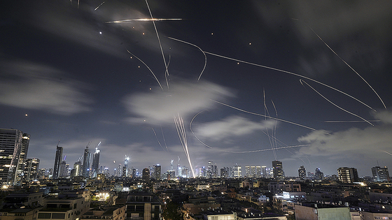 이스라엘의 아이언돔 방공 시스템이 지난 18일(현지시간) 이스라엘 텔아비브 상공에서 이란의 미사일을 요격하기 위해 가동되고 있다. AP=연합뉴스 |