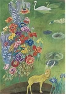 천경자의 '윤삼월'은 작가 화업의 완숙기에 해당하는 1978년 제작된 작품이다. 작품명 '윤삼월'은 '윤달인 3월'을 뜻한다. 윤달은 옛 풍속에서 무슨 일을 해도 부정을 타지 않는 달로 여겨졌다. 이에 걸맞게 출품작 또한 화폭 가득 생명력과 상서로운 기운이 충만하다. 다양한 꽃과 사슴, 백조, 새 등 천경자의 작품에 등장하는 대표적인 소재들이 환상적인 분위기의 화면 속에서 조화를 이루며 작가가 추구한 고전적 설화의 현대적 재해석을 완성도 높게 구현한 수작이다.