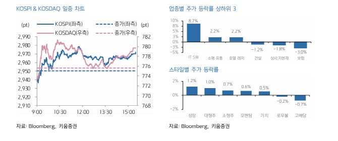 이 연구원은 “전일 종가 기준으로 코스피 지수는 현재 2972포인트를 기록하며 3000포인트까지 약 1%가량을 남겨둔 상태”라며 “이날 코스피는 3000포인트 선에서의 심리적 저항 인식 속 차익 실현 압력에도 불구하고 증시 유동성에 기반해 이를 넘길지가 관전 포인트가 될 전망”이라고 말했다.