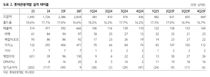 이 연구원은 “최근 한중 관계의 개선 및 방문객 수에 연동한 실적 개선으로 매우 중요했던 카지노 월 매출액 400억원 구간을 상회했으며, 이는 2026년 순이익 기준 흑자 전환이 가능한 성장 속도로 판단한다”고 말했다.