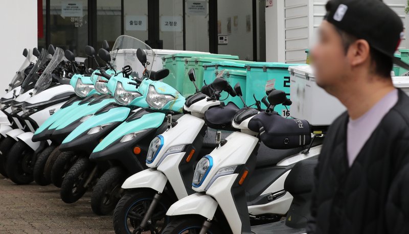 서울 강남구 논현동 배달의민족 자회사 '딜리버리N' 앞에 오토바이들이 주차되어 있다. 2023.5.5/뉴스1 ⓒ News1 김진환 기자 /사진=뉴스1 |