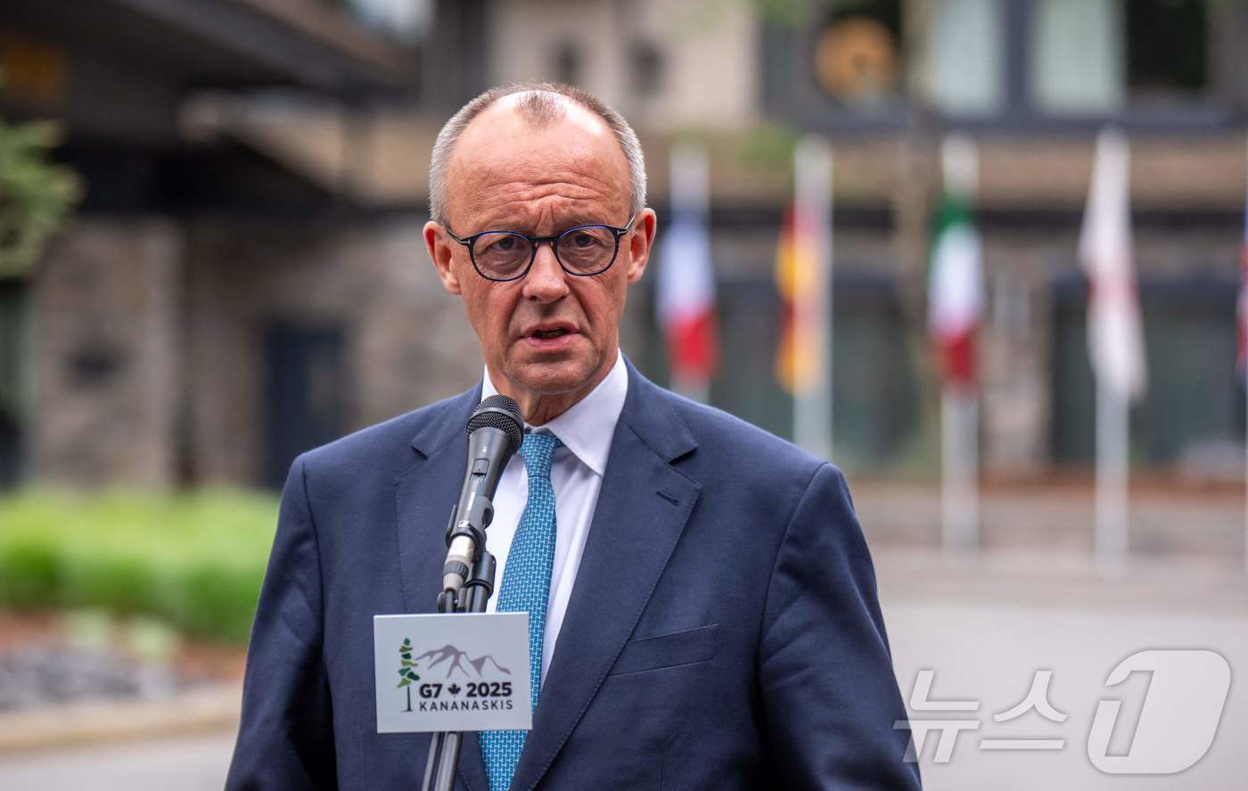 17일(현지시간) 프리드리히 메르츠 독일 총리가 캐나다 앨버타주 캐내내스키스에서 열린 주요 7개국(G7) 정상회의를 마치고 성명을 발표하고 있다. 2025.06.17 ⓒ AFP=뉴스1 ⓒ News1 김지완 기자 |