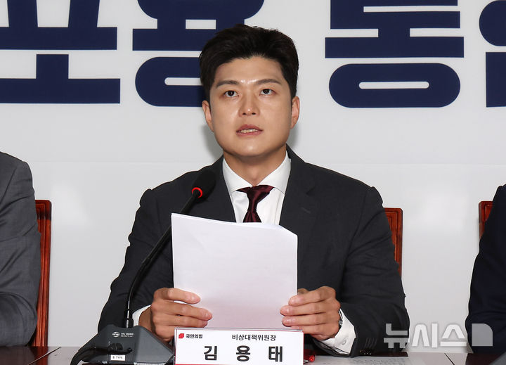 [서울=뉴시스] 김명년 기자 = 김용태 국민의힘 비상대책위원장이 19일 오전 서울 여의도 국회에서 열린 '비리백화점 이재명 정부 인사청문회 대책회의'에서 발언하고 있다. 2025.06.19. kmn@newsis.com |