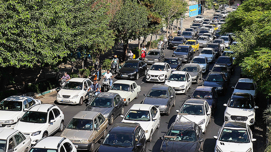 지난 15일 이스라엘의 폭격 이후 피란길에 오른 이란인들. 수도 테헤란을 탈출하기 위해 차량이 길게 들어서있다. AFP=연합뉴스 |