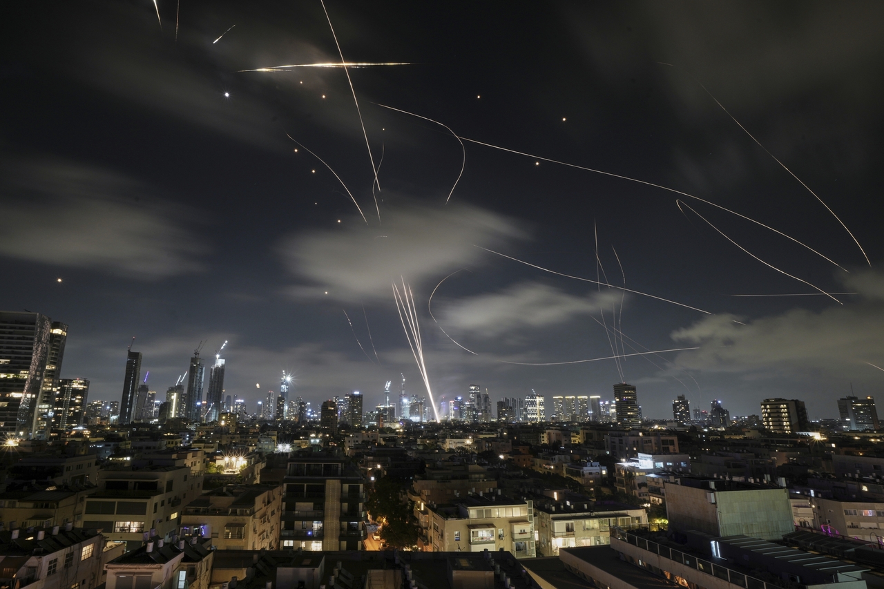 이란의 미사일이 날아다니는 이스라엘 텔아비브 상공. [AP] |