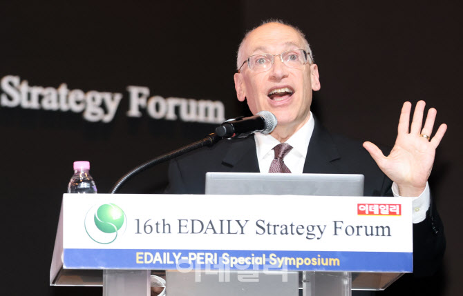 그레고리 액스 어반 인스티튜트 조세 및 소득지원 부소장이 19일 서울 중구 장충동 서울신라호텔에서 열린 ‘제16회 이데일리 전략포럼’에서 ‘지역별 인구대책 차별화’란 주제로 발표를 하고 있다.(사진=방인권 기자) |