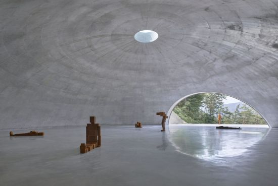 'GROUND'는 기원전 27년 아그리빠가 올림포스의 신들에게 제사를 지내기 위해 닫힌 천장 형태로 건축한 로마 판테온과 유사한 모습인데, 규모는 판테온의 3/4 크기다. 판테온과 다른 점이 있다면 천장에 난 원형 창으로 빛이 스며든다는 것. 해의 움직임에 따라 공간 안을 비추는 빛의 방향이 바뀌는 변화는 의도된 연출이다. 또한, 앞으로 시원하게 탁 트인 시야에는 굽이진 울창한 산맥의 곡선미가 한눈에 들어온다. 전시장 자체가 전시의 일부인 '장소 특정적 예술'로 공간과 조각이 함께 공명한다.