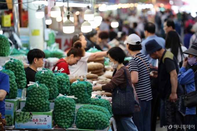 정부가 소상공인 등 민생회복을 위한 추경을 단행했다. 서울 동대문구 경동시장에서 시민들이 장을 보고 있다.기사내용과 무관. /사진=뉴스1. |