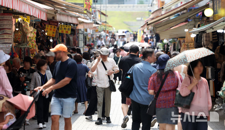 [서울=뉴시스] 김선웅 기자 = 19일 서울 시내 상점가에서 시민들이 오가고 있다. 2025.06.19. mangusta@newsis.com |