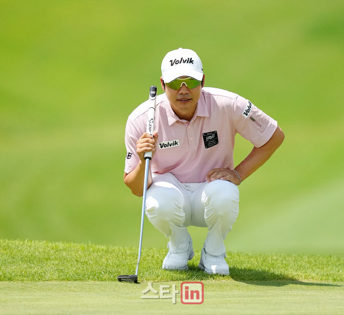 [골프in포토]김민수,퍼트라인 보는 바른 자세