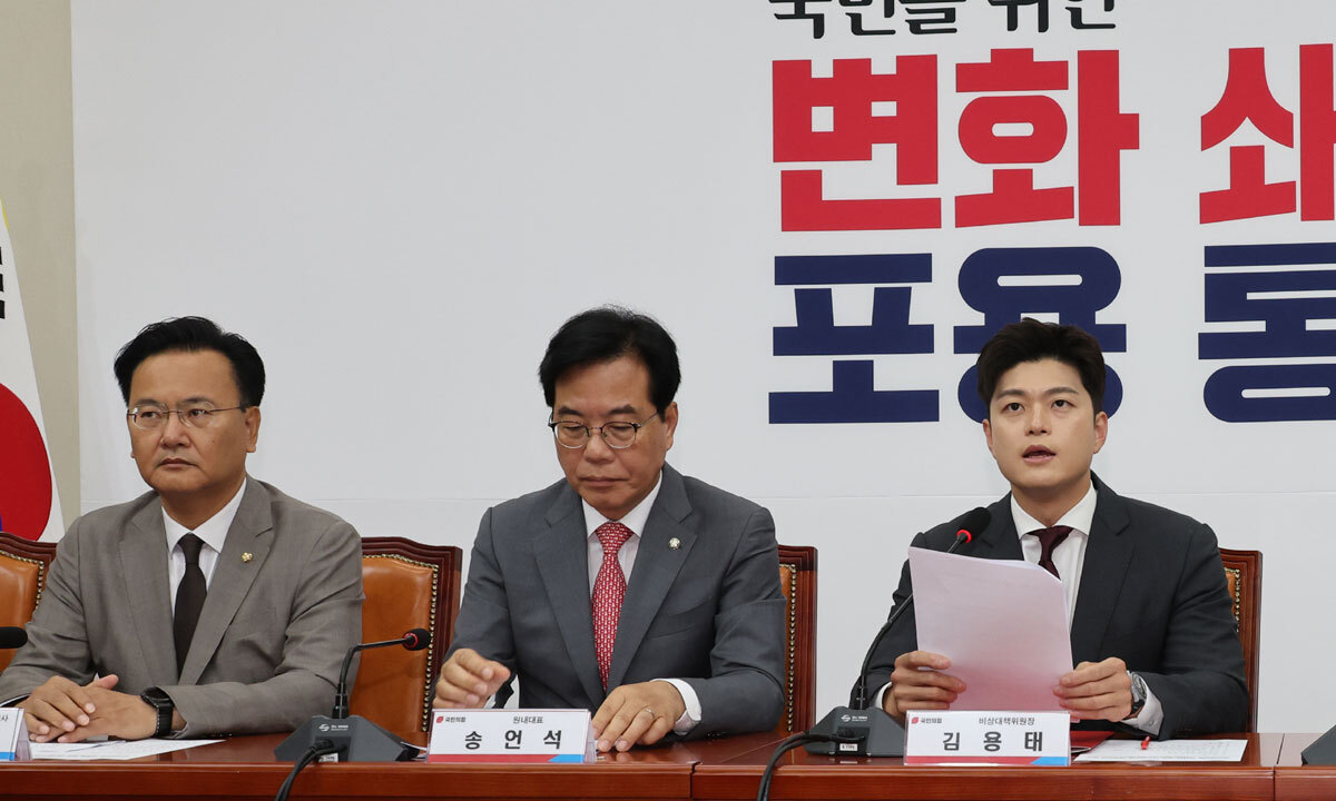 19일 국민의힘 김용태 비상대책위원장과 송언석 원내대표 등은 ‘비리백화점 이재명정부 인사청문회 대책회의’를 열고 김 후보자의 자진 사퇴 및 이재명 대통령에 후보자 지명 철회를 요구했다.