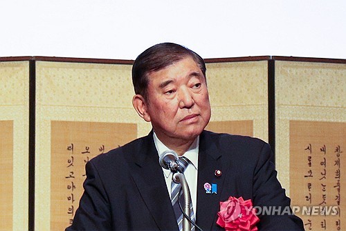 '한일수교 60주년 기념 행사'에서 축사하는 이시바 일본 총리 |