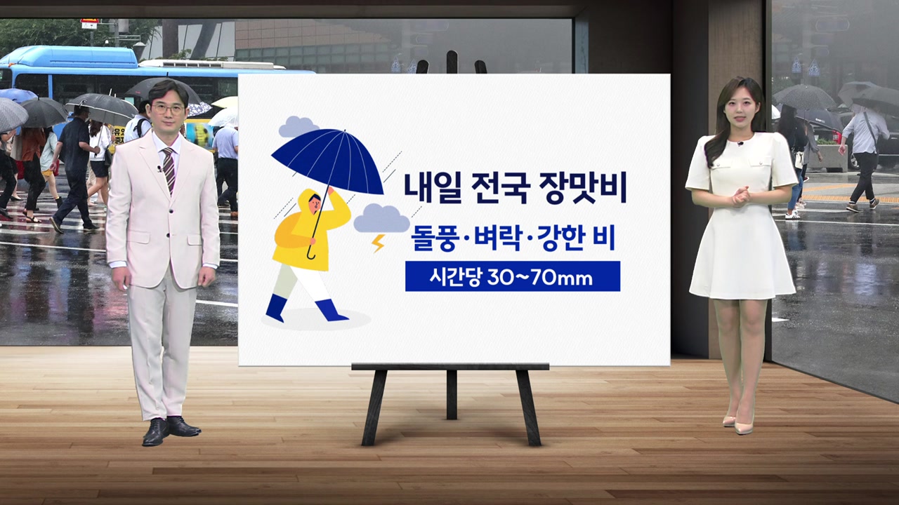 하지만 밤사이 대부분 지역으로 비가 확대되겠고 특히 내일 오후부터 모레 낮 사이 중부와 호남을 중심으로 시간당 30~50mm, 일부 지역은 시간당 70mm 이상의 극한 호우가 쏟아질 가능성도 있겠습니다.