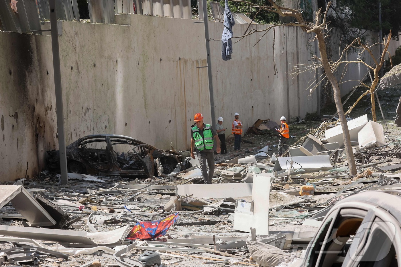 19일(현지시간) 이란의 공격으로 인해 피해를 입은 이스라엘 텔아비브 근처 라마트간의 한 거리에서 구조대가 현장을 살펴보고 있다. 2025.06.19 ⓒ AFP=뉴스1 ⓒ News1 김지완 기자 |