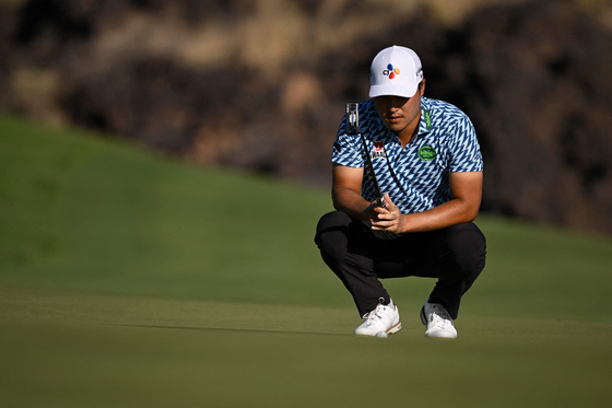 PGA 투어에서 2승을 한 이경훈이 한국에서 재활 치료 중이다. 사진은 지난해 블랙 데저트 챔피언십에서 퍼트 라인을 보는 이경훈. [AFP=연합뉴스] |