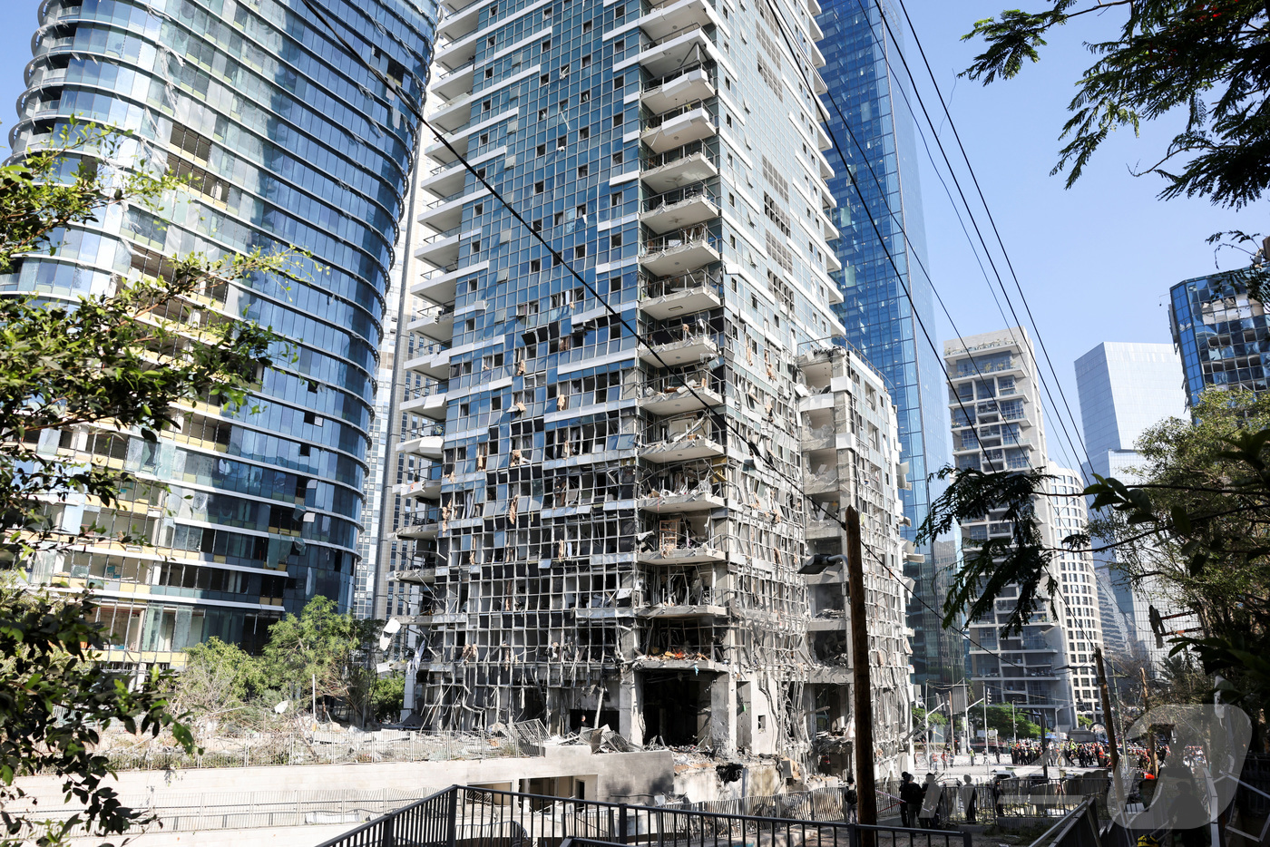 (라마트간 로이터=뉴스1) 김지완 기자 = 19일(현지시간) 이스라엘 텔아비브 동쪽에 위치한 라마트간의 한 건물이 이란의 미사일 공격으로 큰 피해를 입은 모습. 2025.06.19 ⓒ 로이터=뉴스1