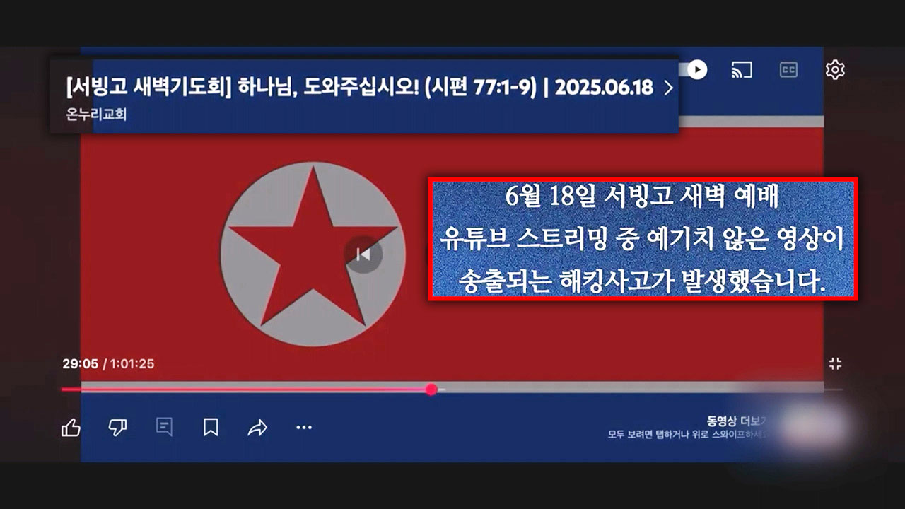 서울의 대형 개신교 교회에서 새벽 예배를 스트리밍하던 중 인공기가 등장하는 일이 벌어졌습니다.