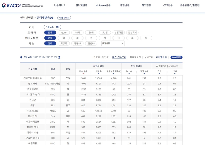 '방송콘텐츠 가치정보 분석(RACOI)' 화면 |