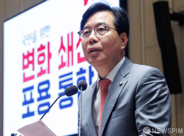 [서울=뉴스핌] 윤창빈 기자 = 송언석 국민의힘 원내대표가 20일 오전 서울 여의도 국회에서 열린 비리백화점 이재명 정부 인사청문회 대책 긴급의원총회에서 모두발언을 하고 있다. 2025.06.20 pangbin@newspim.com |