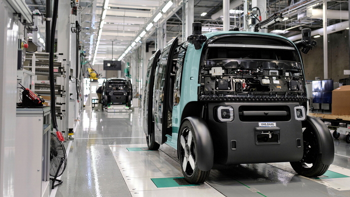 아마존 죽스 로보택시가 미국 캘리포니아주 헤이워드 지역에 위치한 약 2만㎡ 규모 공장에서 조립되고 있다. [AP = 연합뉴스] |
