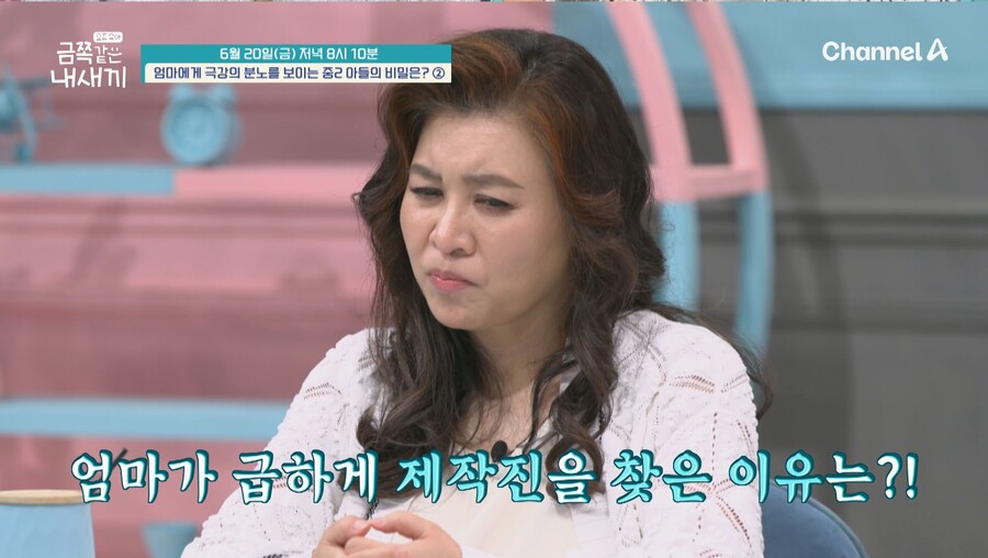 20일 방송하는 채널A ‘요즘 육아 - 금쪽같은 내새끼’에서는 ‘엄마에게 극강의 분노를 보이는 중2 아들의 비밀은?’의 두 번째 사연이 공개된다.
