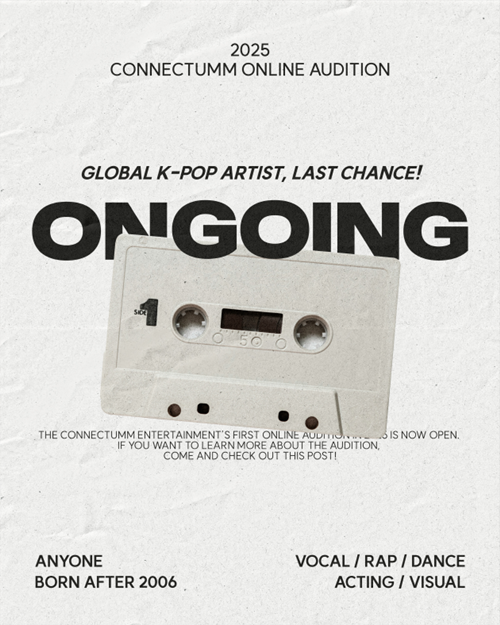 이번 오디션은 국내외 음악 시장에서 활동할 잠재력을 지닌 차세대 아티스트를 찾기 위한 것으로, 나이·성별·국적 제한 없이 누구나 지원할 수 있다. 커넥텀은 차세대 보이그룹 론칭을 목표로 본격적인 팀 구성을 진행 중이다.