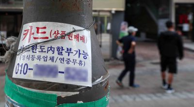 경기 불황 속에서 은행 등 1금융권의 대출 문턱이 높아지면서 카드론과 현금서비스 규모가 역대 최대를 기록한 것으로 나타난 30일 서울 중구 명동거리에 카드 대출 관련 광고물이 붙어 있다. 사진=강진형 기자aymsdream@ |