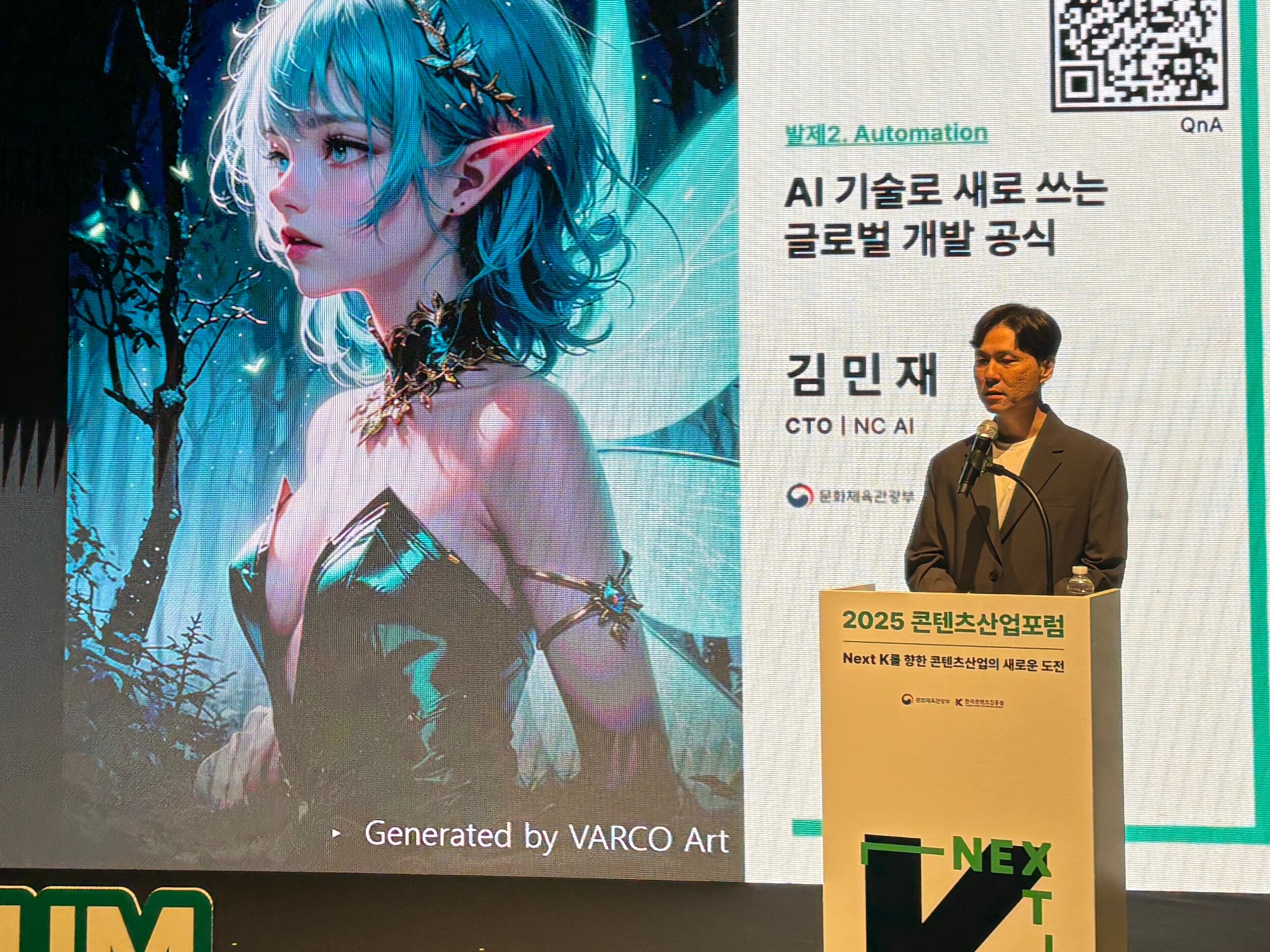 김 CTO는 자사의 생성형 AI 플랫폼 ‘바르코(VARCO)’를 중심으로 게임사의 AI의 활용 현황을 공유했다. 그는 “이미지 생성뿐 아니라, 영상·사운드·보이스·립싱크 등 게임 콘텐츠 전체를 자동 생성할 수 있는 수준으로 AI가 발전하고 있다”며 “3D 모델링까지 AI가 자동 생성하는 단계에 이르렀다”고 말했다. 이어 “이는 제작 시간과 비용을 줄이고, 다국어 콘텐츠 제작과 글로벌 사용자 대응력을 끌어올리는 데 결정적 역할을 하고 있다”며 “AI가 창작 전반의 보조를 넘어 주요 제작 도구로 기능하는 시대”라고 덧붙였다.