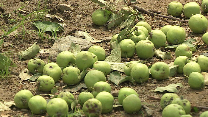 과수 1개만 봐도 생채기가 10곳 이상이 났는데, 얼마나 우박이 강하게 쏟아졌는지 짐작 가능케 합니다.