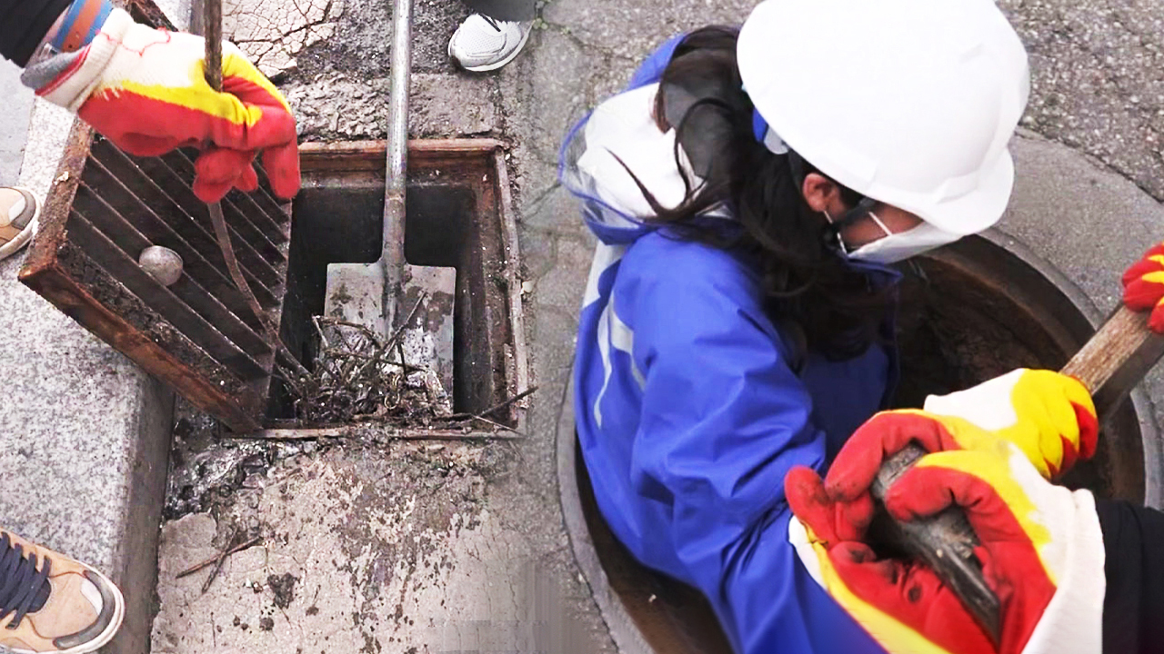 장마를 앞두고 도로변 하수구를 청소하기 위해섭니다.