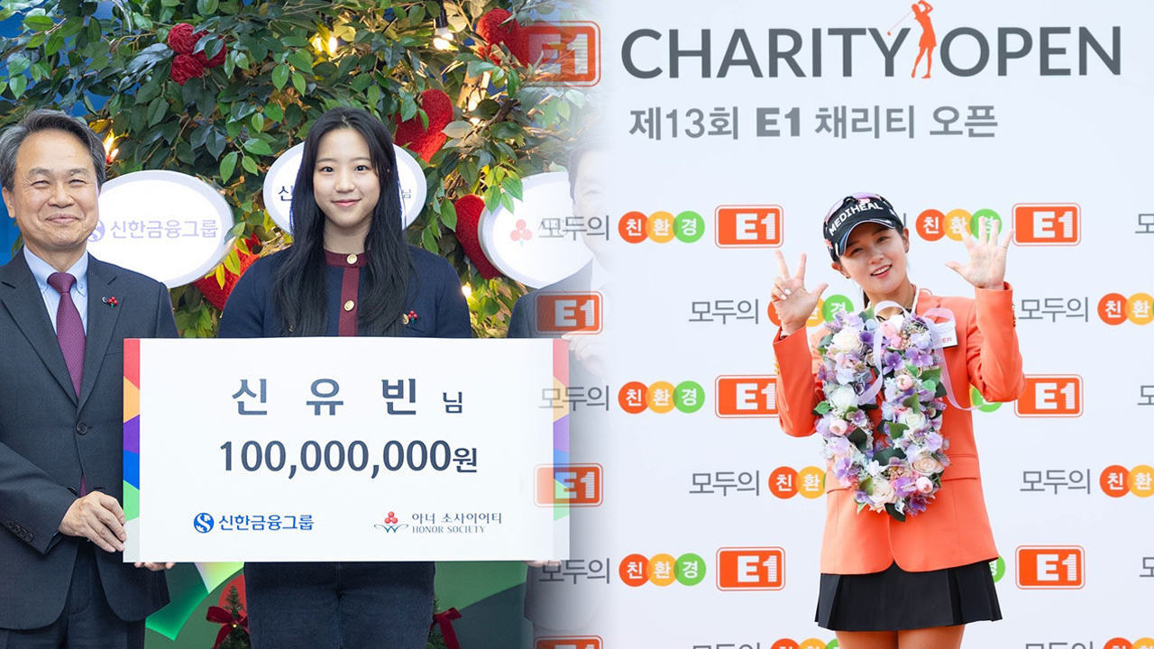 박현경이 정상에 오른 이번 대회의 명칭은 'E1 채리티 오픈'입니다. '채리티 오픈'이라는 이름에 걸맞게 이 대회에서는 선수들이 자발적으로 상금 일부를 기부할 수 있게 하고, 주최사 E1도 추가로 8천만 원을 기부합니다. 애초 박현경은 상금의 13%를 기부하겠다는 의사를 밝혔다가 우승 직후 상금을 모두 내놓았습니다. 그는 "이 대회 취지를 생각하면 기부 문화가 떠오르지 않나. 그것에 맞게 좋은 일에 동참하고 싶다"며 우승 상금 전액을 기부했습니다. 박현경은 "보이지 않는 곳에서 어려움을 겪는 분들이 많다는 것을 알고 있어서 조금이나마 도움을 드리고 싶다고 늘 생각해 왔다. 10승을 채우면 어느 대회든 우승 상금 전액을 기부하고 싶었는데, 이번 대회에서 기회가 생기면서 혹시나 우승한다면 바로 해야겠다고 마음먹었다"며 "실현돼서 정말 기쁘다"며 환한 미소를 지었습니다.