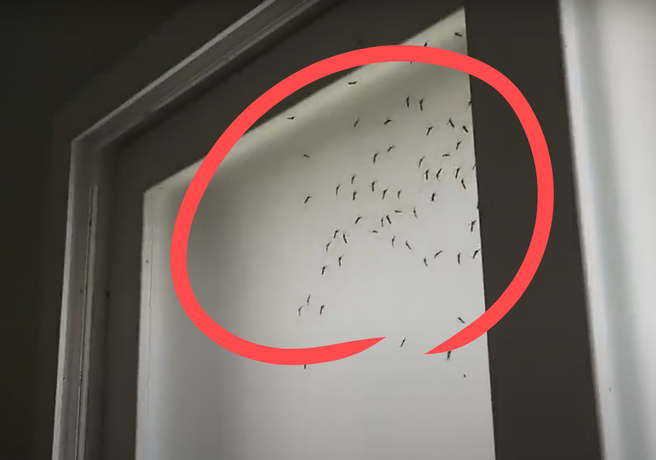 창문에 모기떼가 붙어 있다.[X(구 트위터) 갈무리] |