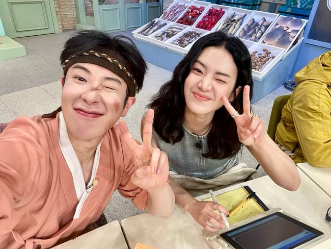 박주현은 피오를 만났다. 독특한 분장을 한 피오 옆에 앉은 박주현은 함께 유쾌한 표정과 포즈를 취하며 케미스트리를 완성했다. 특히 피오와 만남이 눈길을 끄는 건 피오가 박주현과 열애설에 휩싸인 위너 송민호의 절친이기 때문이다.
