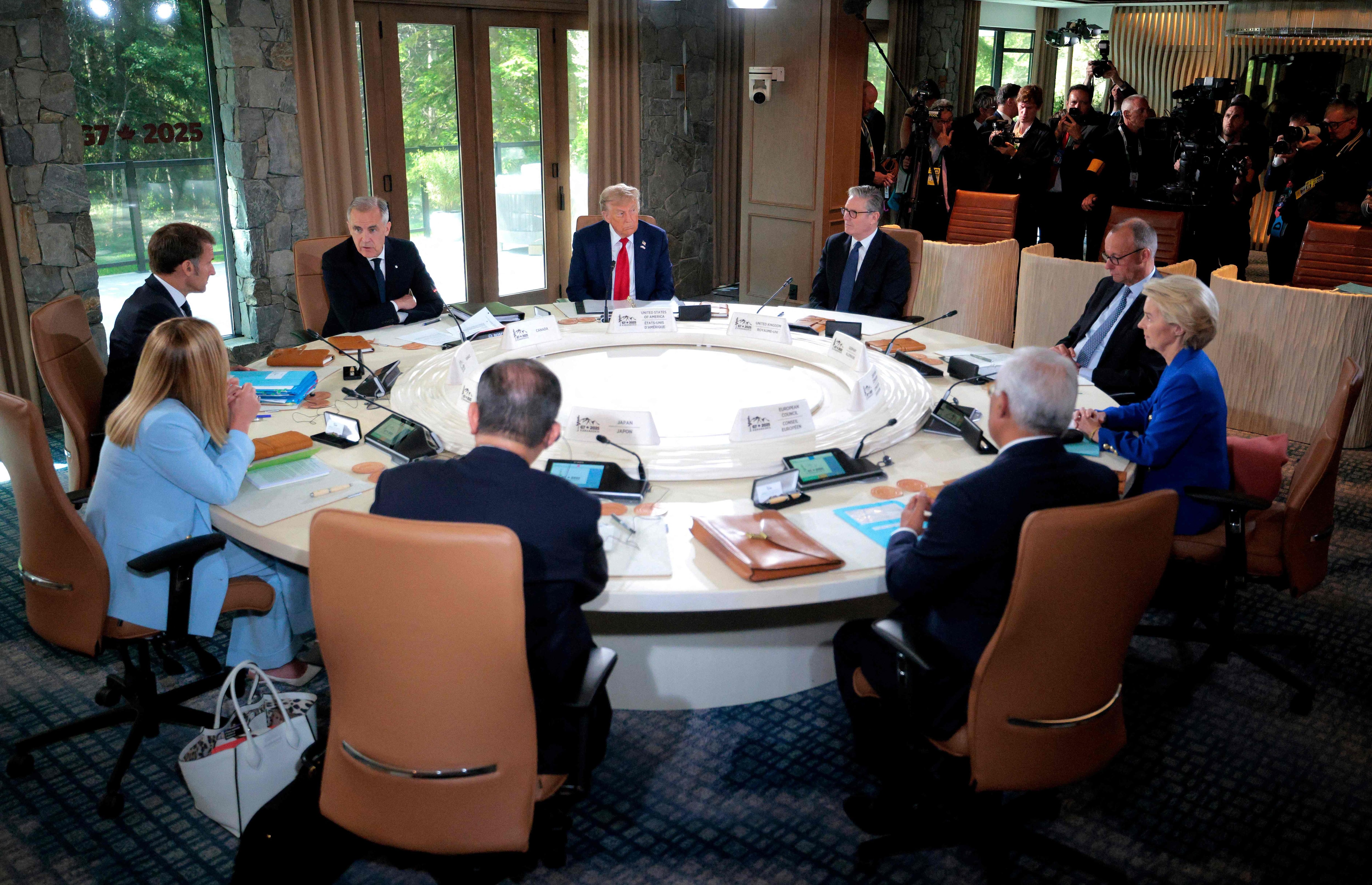 우르줄라 폰데어라이엔 유럽연합(EU) 집행위원장은 7월17일 X(옛 트위터)에 G7에서 트럼프 대통령과 찍은 사진을 공개하면서 "우리는 공평한 무역 협상 타결을 위해 협상팀에 서두를 것을 지시했다"고 썼다. /X |