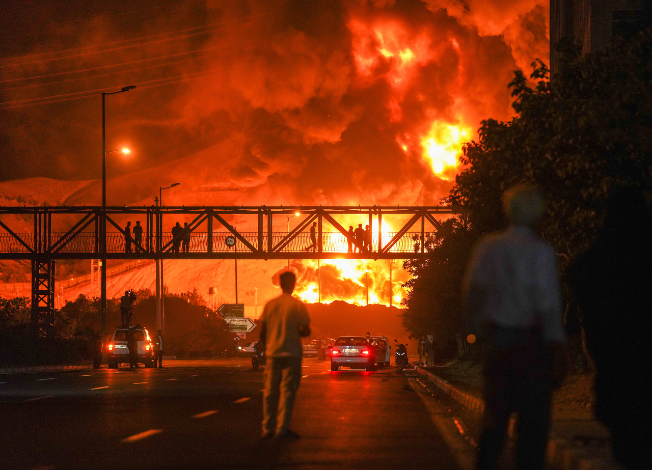 이란 수도 테헤란 인근의 원유 정제시설이 이스라엘 공습으로 불길에 휩싸인 모습 [UPI] |