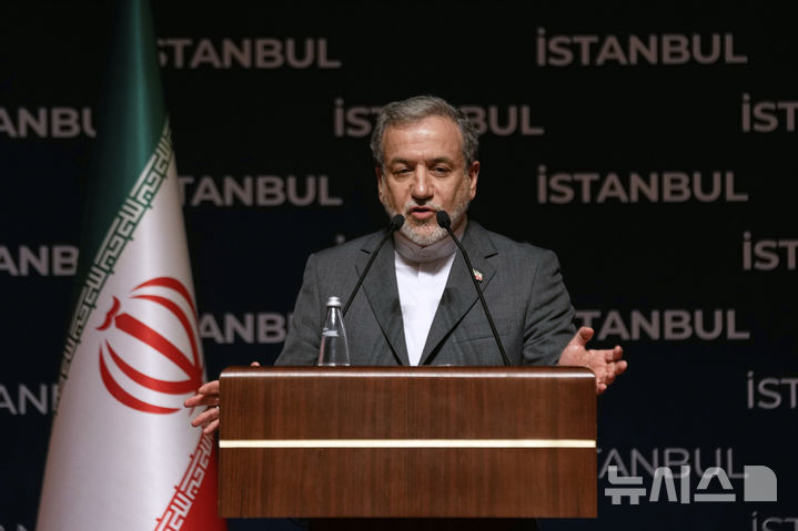 [AP/뉴시스] 이란의 아라그치 외무장관이 22일 미국의 이란 핵시설 공격과 관련해 튀르키예에서 기자회견을 하고 있다