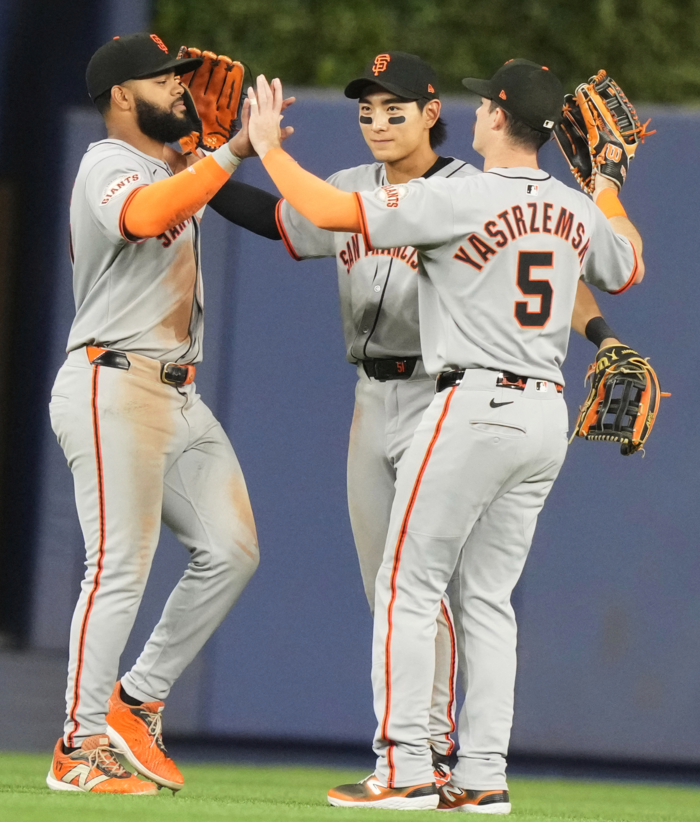 Heliot Ramos, Jung Hoo Lee, Mike Yastrzemski. 연합외신 |