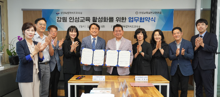 신경호 강원도 교육감은 "이번 협약을 계기로 인성교육 실천 기반을 강화할 수 있을 것"이라며 "학생의 전인적 성장 지원과 도덕적 인성 함양을 위해 역량을 기울이겠다"고 말했다.