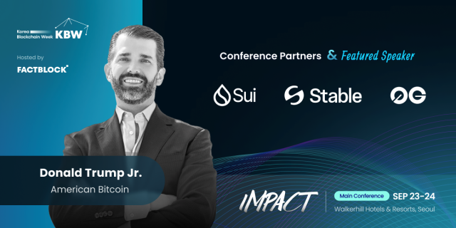 [디지털데일리 박기록기자] 도널드 트럼프 주니어가 올 9월 서울에서 열리는 코리아 블록체인 위크 2025의 메인 이벤트 ‘KBW2025:IMPACT’에서 글로벌 블록체인 산업에 대한 자신의 메시지를 전한다. 또 공식 컨퍼런스 파트너로 수이(Sui) 스테이블(Stable) 제로지(0G) 참여도 확정됐다.