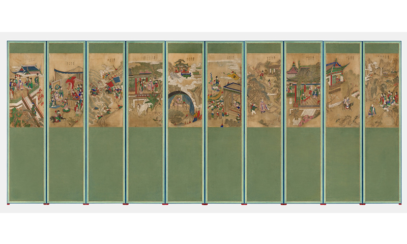 미국 포틀랜드미술관이 보유한 ‘구운몽도 병풍’은 소설 ‘구운몽’의 주요 장면을 열 폭에 나눠 묘사한 그림이다. 김만중(1637~1692)이 17세기 말 발표한 ‘구운몽’은 이야기를 병풍에 그려 애호하는 풍조가 생겼을 정도로 널리 사랑받았다.