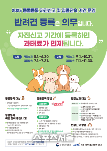 주재희 경제창업국장은 “동물등록은 성숙한 반려동물 문화 조성의 첫걸음”이라며 “시민들의 지속적인 관심과 참여로 반려동물 친화도시를 함께 만들어가자”고 말했다.