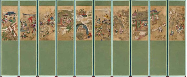 미국 포틀랜드미술관 소장 '구운몽도 병풍'은 김만중(1637~1692년)이 지은 소설 '구운몽'의 주요 장면을 10폭에 나눠 묘사한 그림이다. '구운몽'은 17세기 말에 지어져 왕실부터 민간까지 사랑을 받은 작품이다. 그 이야기를 병풍에 그려 애호하는 풍조도 20세기까지 지속됐다.